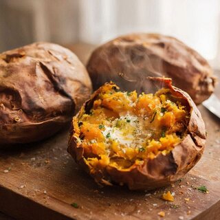 - さらに、濡らした厚手のキッチンペーパーで包んでからアルミホイルで巻くと、水分が保たれ、ねっとりとした食感に仕上がりやすくなる。